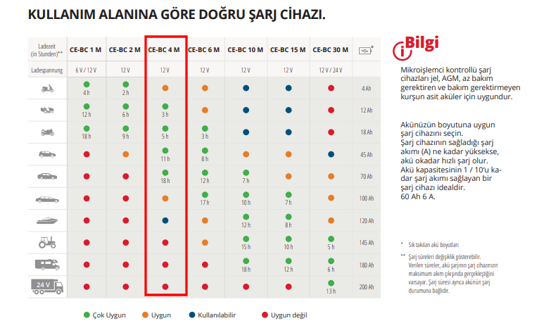 - Uygun Akü Aralığı : 3 - 120 Ah
