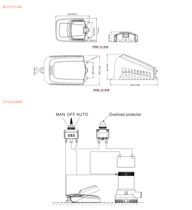 - SEAFLO serisi şamandıralı anahtar max amper 25A'ya kadar çeker.
